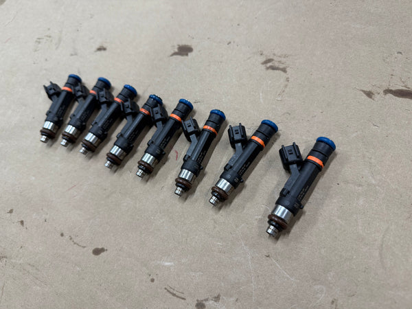OEM set of 8 fuel injectors. Take offs are in good shape and damaged free. Part number is pictured.