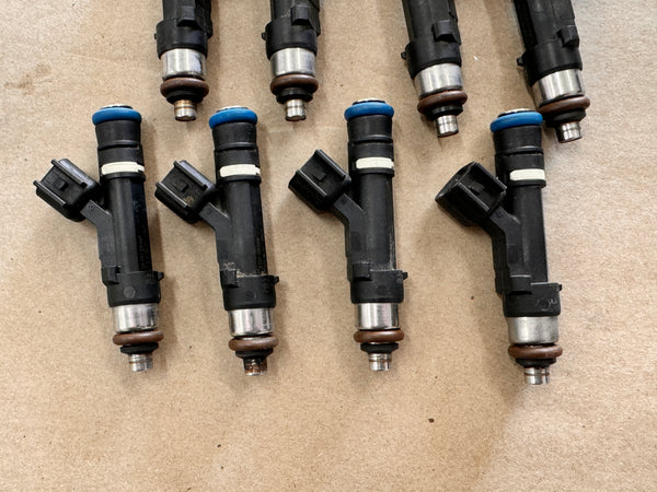 OEM set of 8 fuel injectors. Take offs are in good shape and damaged free. Part number is pictured.